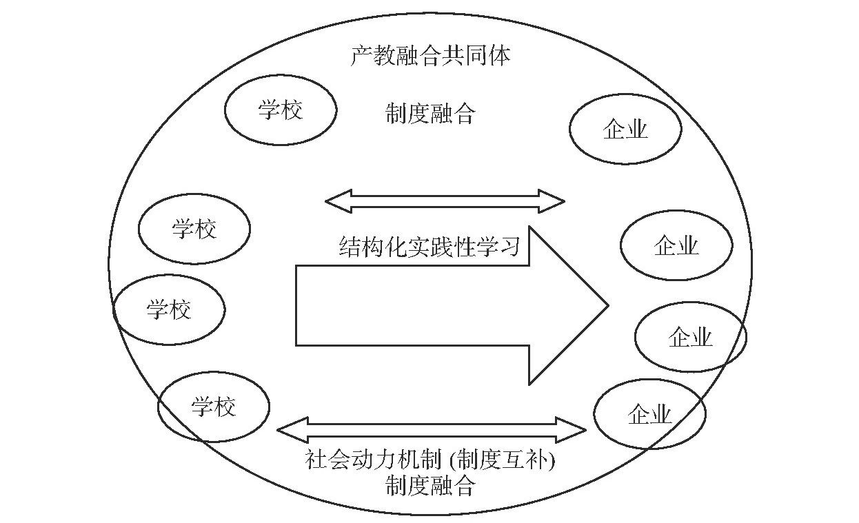 产教融合共同体运行机制可用图1表示。产教融合共同体作为一种强大的外部动力机制,推动学校与企业之间的制度融合,形成校企制度化合作关系,为结构化实践性学习提供平台。